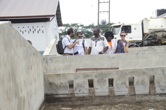 The Innovations Manager, Martha Adjoa Annan, explained how the facility converts both solid and liquid waste into compost. She explained that the facility receives 12,500 m³ of sludge and 700 tonnes of food waste annually and through the use of low-cost appropriate technology, converts this to compost.